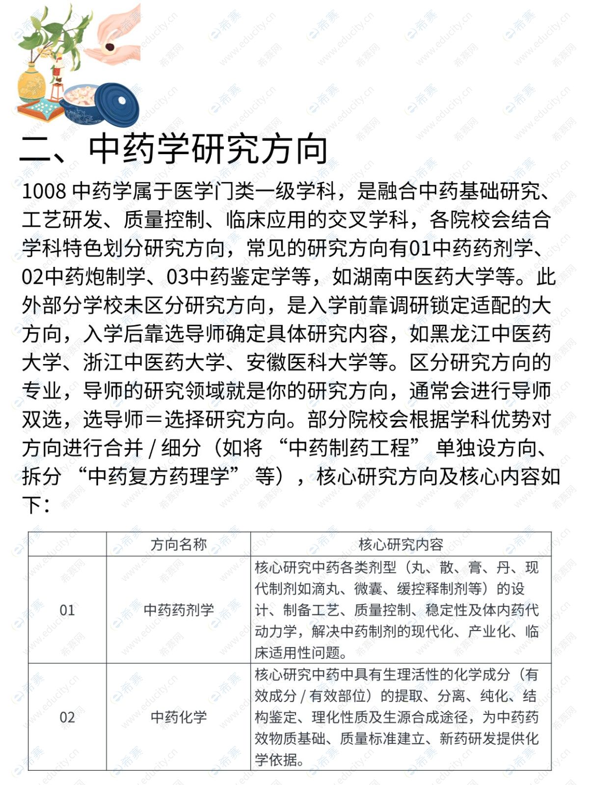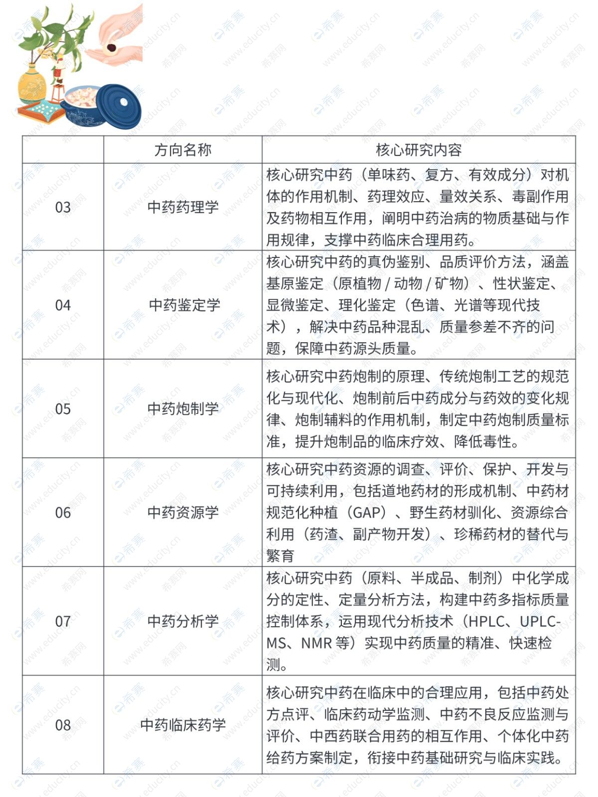 代码 1008(医学门类),涵盖本 / 研阶段,核心研究中药理论、资源开发、工艺质控与临床应用