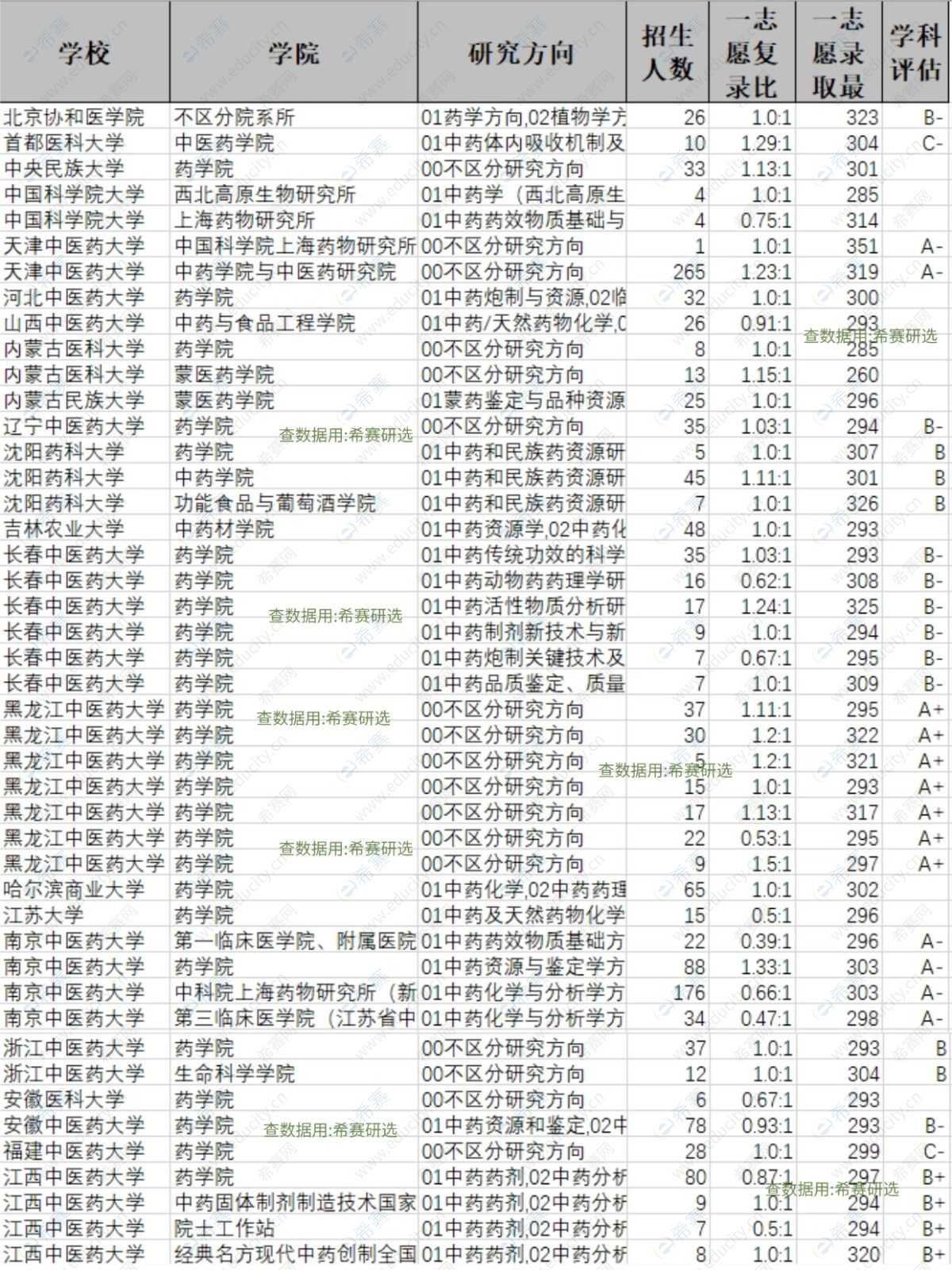 补充:黑中医(A+)、天中医(A-)等学科评估 / 复录比可辅助判断竞争度