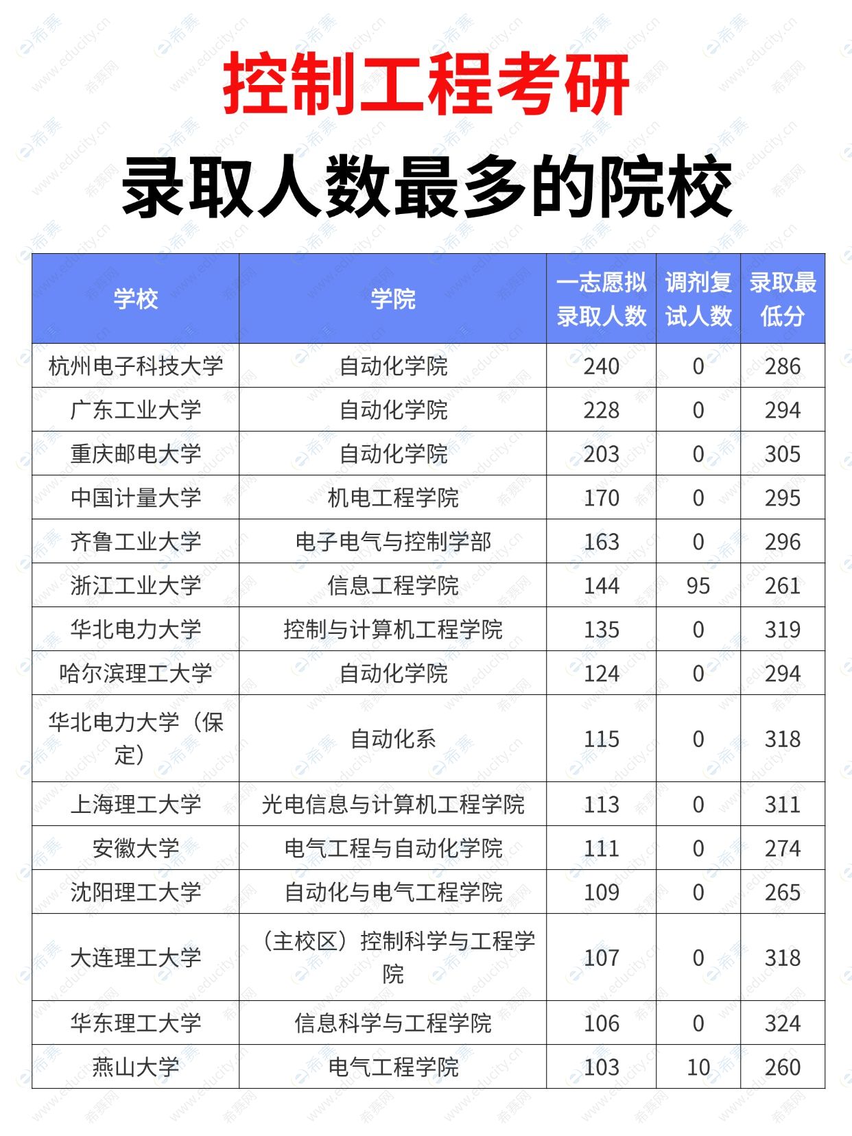 下面是2025年控制工程考研录取人数最多的部分院校,可做择校时的参考哦。