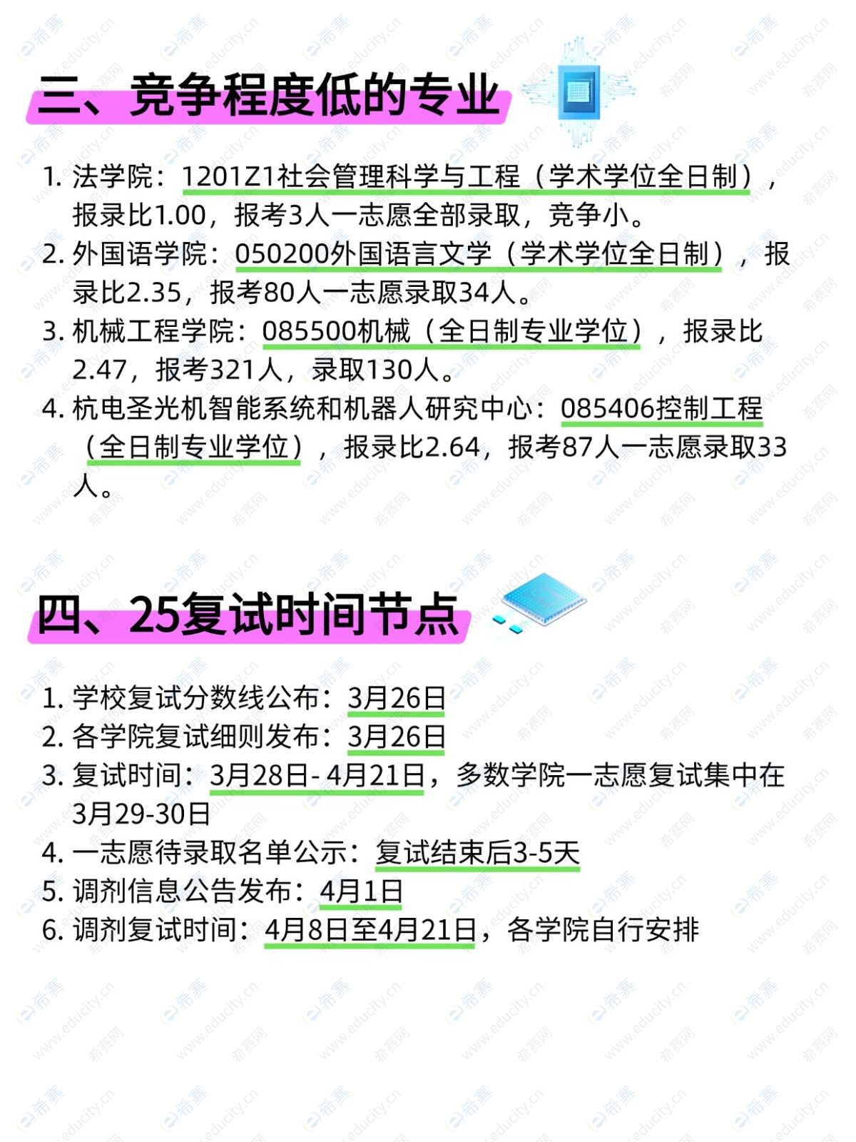 摘要:杭州电子科技大学考研难度,报录比较高的专业有:集成电路工程(非全日制)、计算机技术(非全日制)、集成电路科学与工程、会计(非全日制)、图书情报、软件工程、数字媒体技术;报录比较低的专业有社会管理科学与工程、外国语言文学、机械、控制工程。