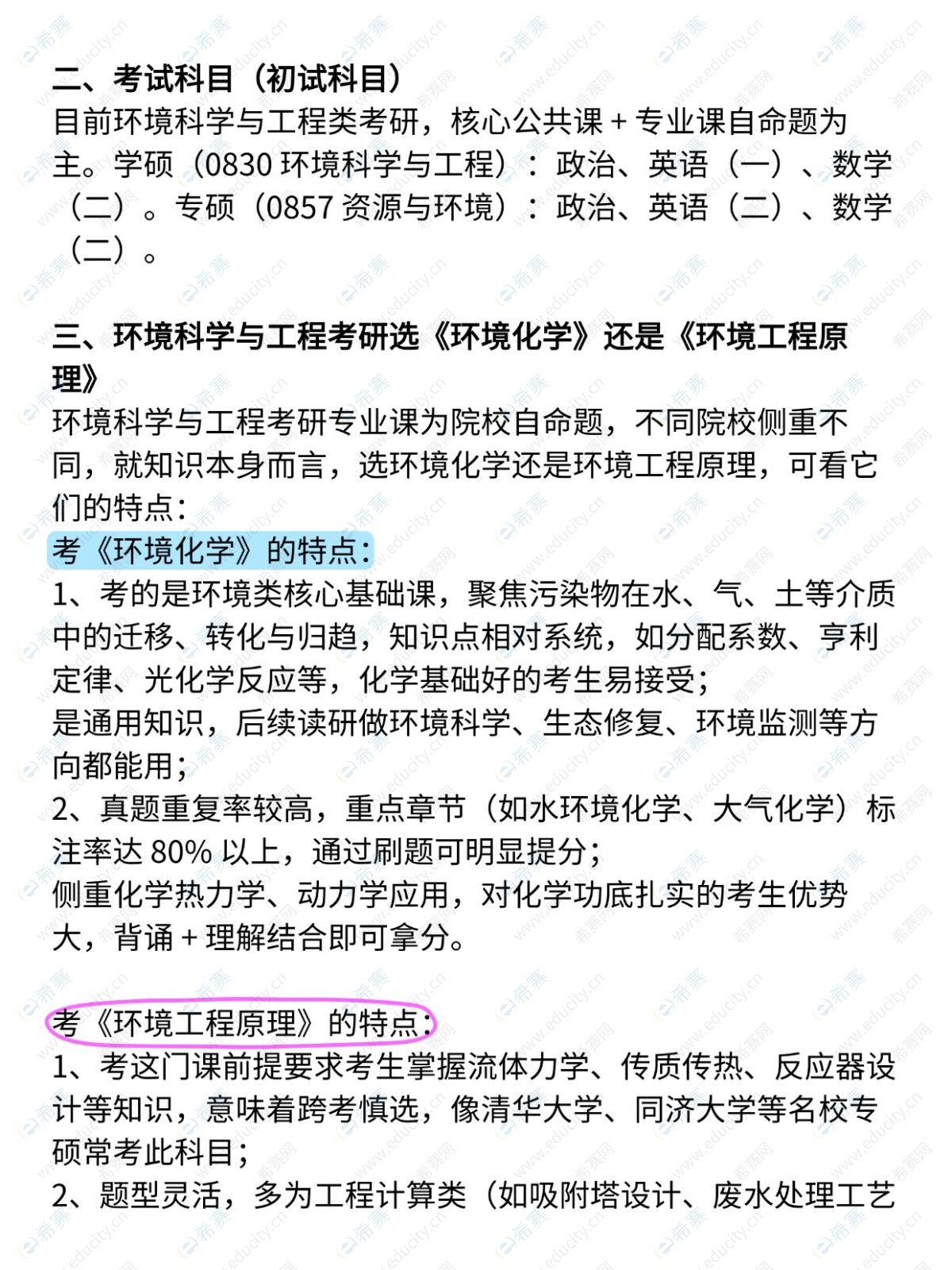 专业课:《环境化学》(重化学基础)或《环境工程原理》(重工程计算)