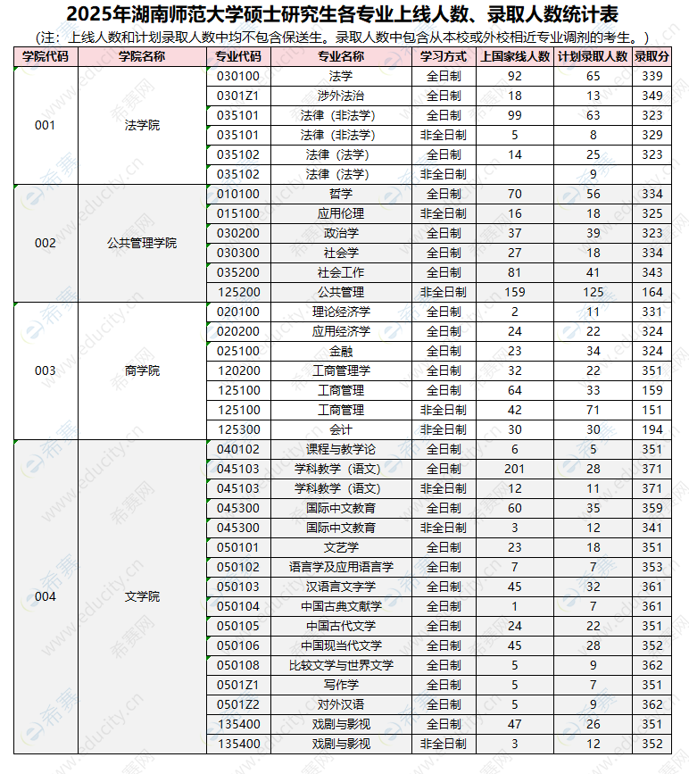 下面是2025年湖南师范大学考研录取人数及录取分数: