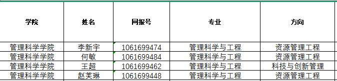现将管理科学学院2026年硕博连读复试学生名单公示,公示期间如有异议,请以书面形式向管理科学学院博士招生工作小组反映。