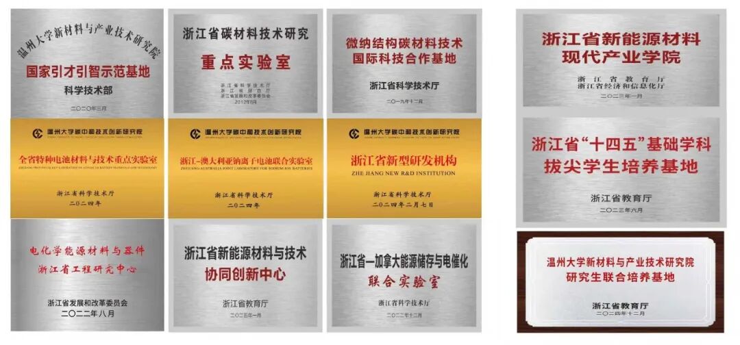 学院建有国家引才引智示范基地、中国轻工业制笔材料重点实验室、浙江省碳材料技术研究重点实验室、浙江省皮革工程重点实验室、浙江省微纳结构碳材料技术国际科技合作基地、电化学能源材料与器件浙江省工程研究中心、省级新型研发机构2所等14个省级教科研平台和浙江省新能源材料现代产业学院,建有温州大学碳中和创新技术研究院、温州大学新材料与产业技术研究院等4个校地研究院。