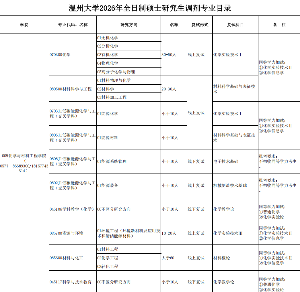 摘要:温州大学化学与材料工程学院2026年硕士研究生复试咨询