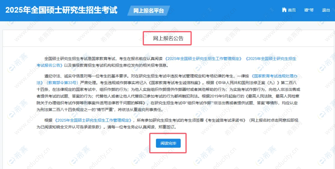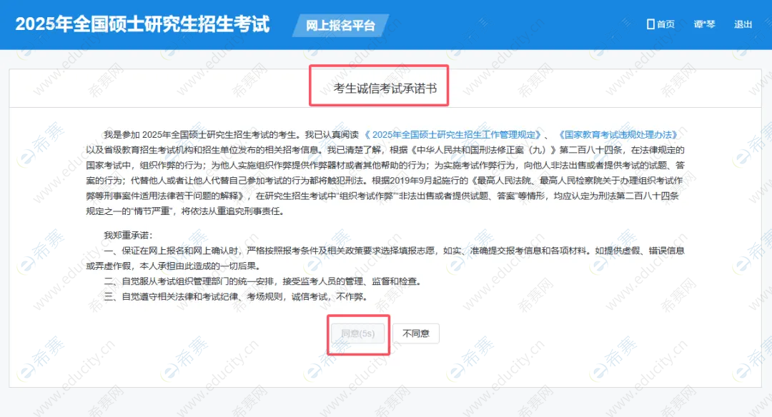 12.阅读报名公告、考生诚信考试承诺书,点击同意