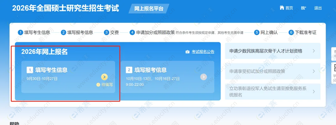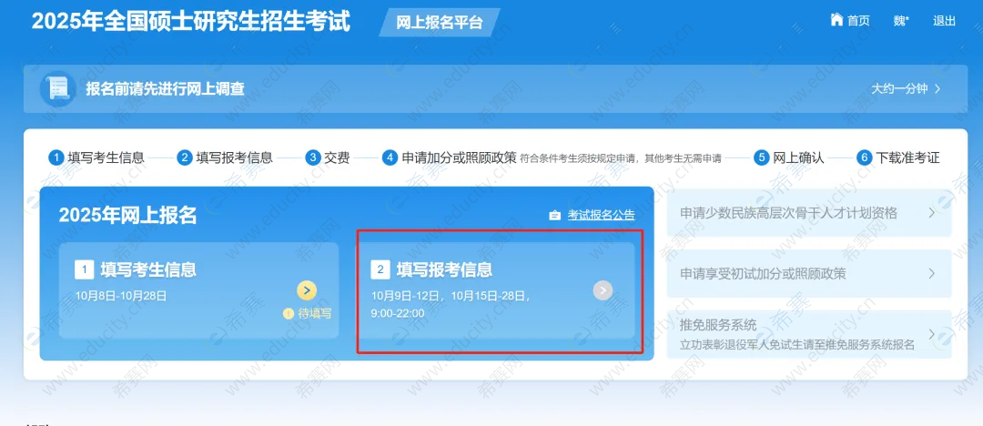 4.网报分为填写考生信息和填写报考信息两大步骤,首先点击填写考生信息