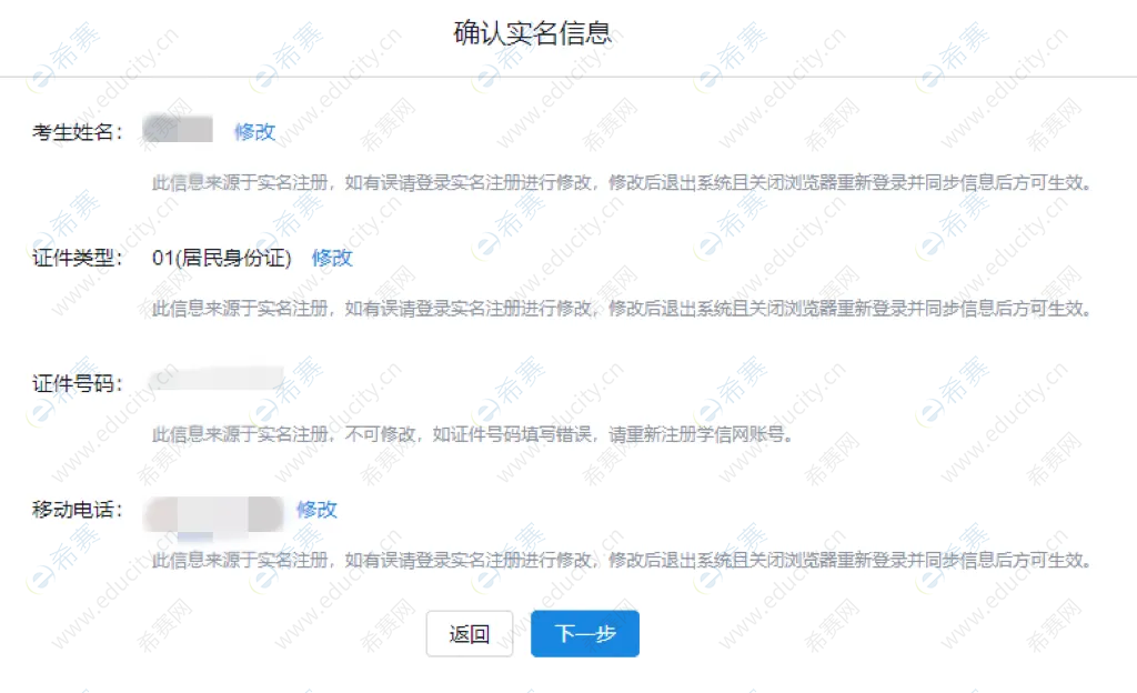 注:通讯地址用于快递录取通知书,请务必正确填写。填写所有信息后需要确认个人考生信息,无误后点击确认即可。再返回首页填写报考信息。