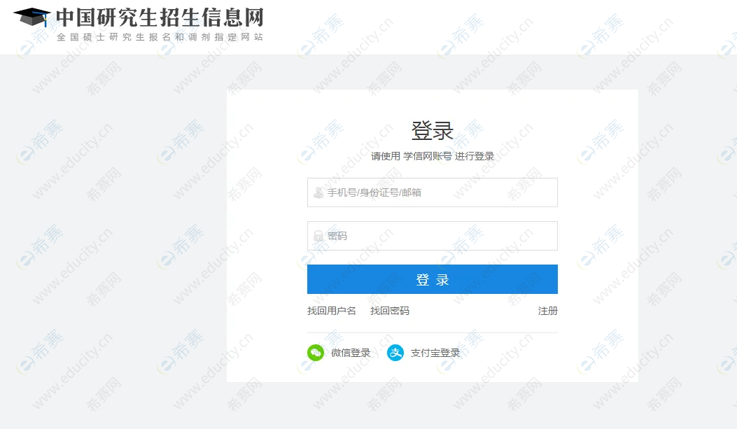 2.实名注册。使用个人用户名、密码进行登入(未注册的考生需要先注册)注册用户直接与报名号对应,是查询报名号的唯一方法,在后期的信息查询、准考证下载和调剂系统中继续使用。报名期间,考生可自行修改网上报名信息或重新填报报名信息(每位考生只能保留一条有效报名信息),无需重复注册。