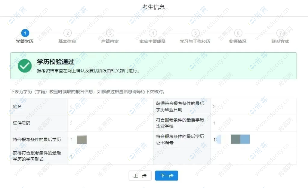 8.完成后会有学历校验通过的提示,可继续进行下一步。