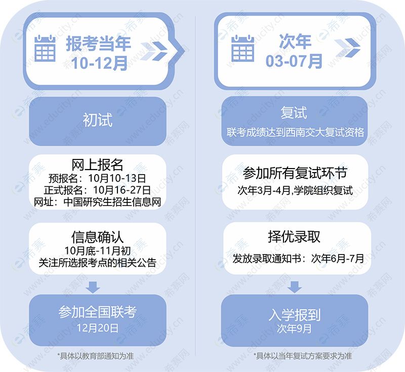 以上内容若有变化,以上级文件及学校最新文件为准,本招生简章及专业目录的最终解释权归西南交通大学经济管理学院。请参见当年《西南交通大学硕士研究生招生章程》,招生考试其他有关事项请参见当年《全国硕士研究生招生工作管理规定》,或及时登录“研招网”浏览查询报考须知和学校官网相关公告。