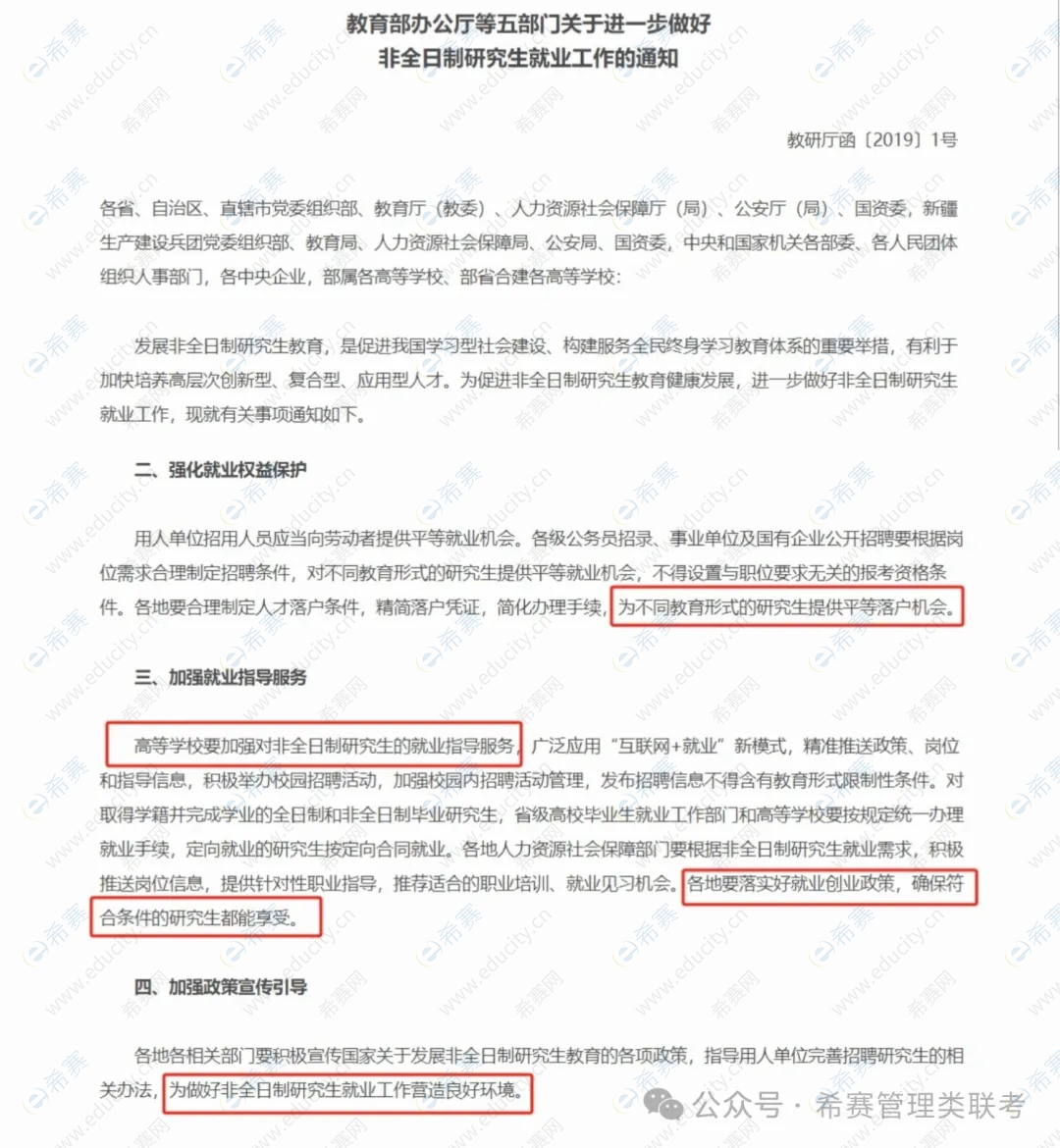 早在2017年“非全日制研究生”被划入全国统考范围内后,《高等教育法》中就明文规定:高等教育采用全日制和非全日制教育形式。考试招生执行同样的政策和标准,培养质量坚持统一要求,学历学位证书具有同等的法律地位和相同效力。