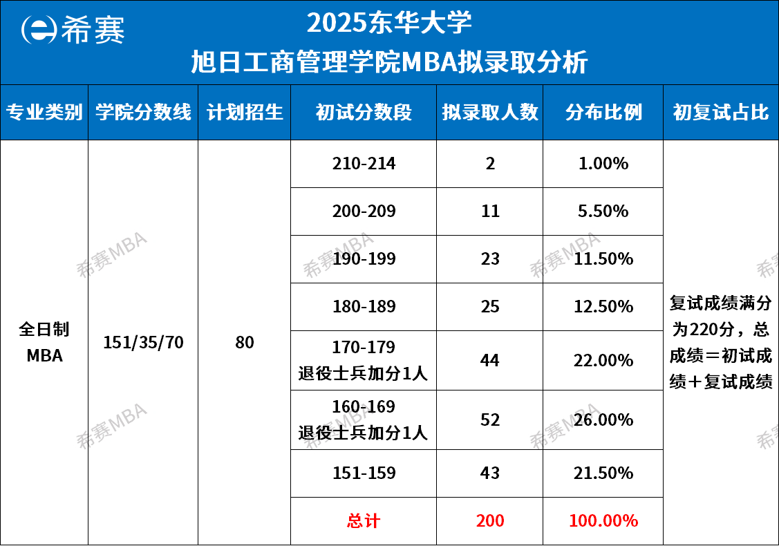 复试成绩满分为220分,总成绩=初试成绩+复试成绩