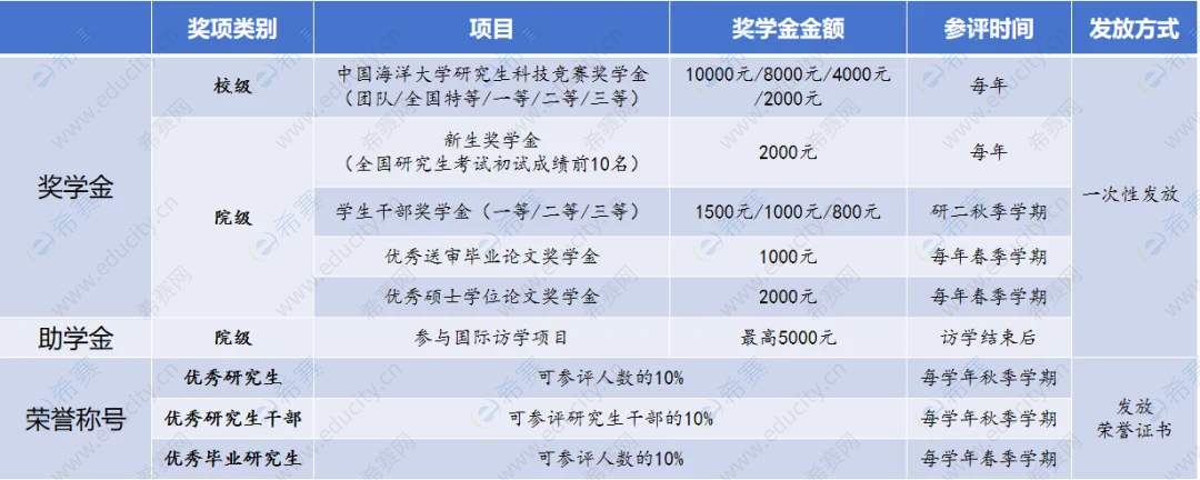 以上就是【中国海洋大学MPA学生是否有奖学金?】的全部内容,更多院校的相关内容,可以关注希赛网MPA频道,也可以“在线咨询”我们的辅导老师,解决您的择校和其它报考问题。
