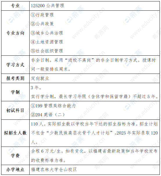 摘要:福建农林大学2026年公共管理硕士(MPA)专业学位研究生招生简章已发布,下面小编为大家整理了详细内容,2026有报考需求的同学可以来了解下。