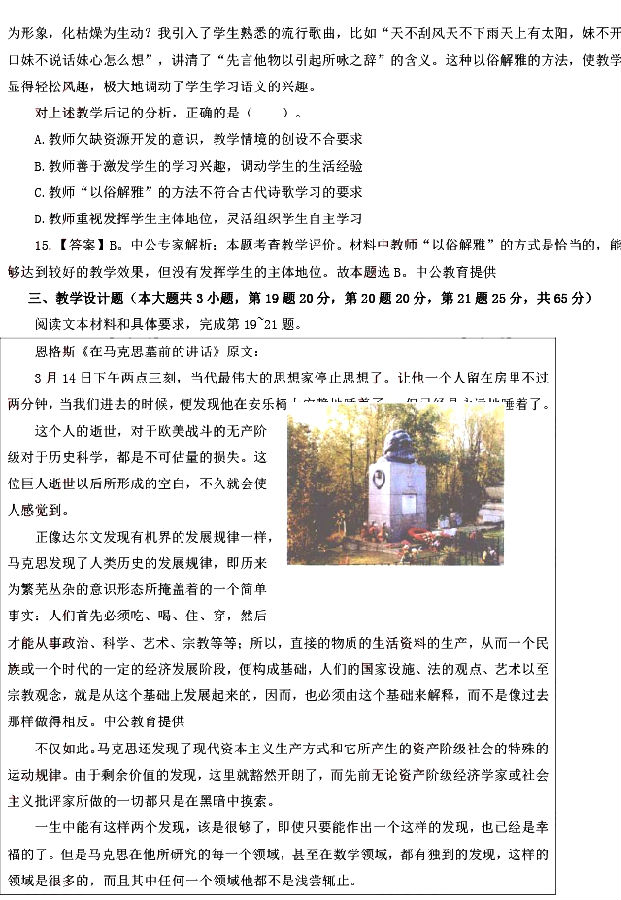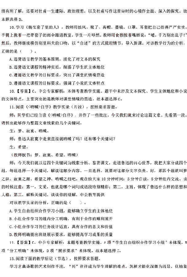 2015年上半年教师资格证笔试真题及答案:《高中语文》