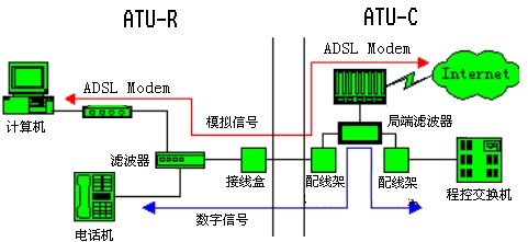 调制技术是ADSL的关键所在。在ADSL调制技术中,一般均使用高速数字信号处理技术和性能更佳的传输码型,用以获得传输中的高速率和远距离。ADSL能够在现有的铜线环路,即普通电话线上提供较高达8Mbps的下行速率和640kbps的上行速率,传输距离达3-5公里,是目前几种主要的宽带网络接入方式之一。其优势在于可以充分利用现有的电话线网络,在线路两端加装ADSL设备即可为用户提供高带宽服务。由于不需要重新布线,所以降低了成本,进而减少了用户上网的费用。