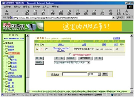 (3)在"收件箱页面"中看到有一封"发件人"为"Netease.com Inc"的信,如图2-28所示。点击这封信,进入"读邮件页面".