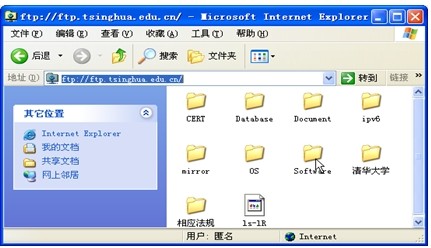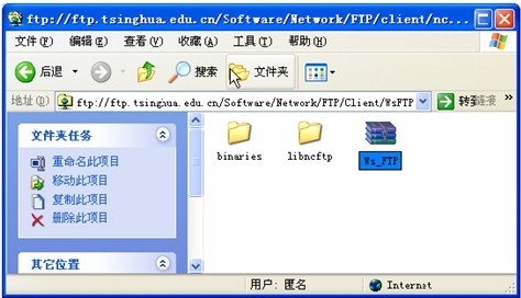 下面,以IE浏览器作为FTP客户程序,访问清华大学的FTP服务器。下载"图形界面的FTP客户程序WS_FTP".