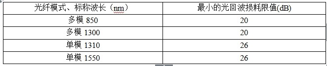综合布线系统光纤布线链路任一接口的光回波损耗限值,应符合表3-9的规定。