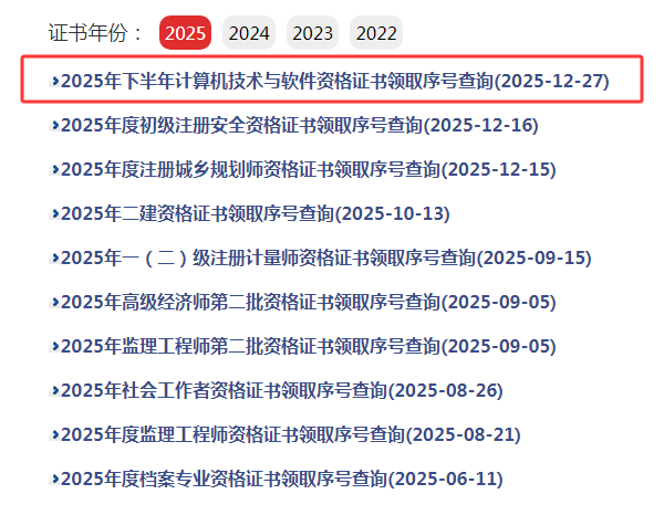 2025年度下半年软考资格证书领取序号查询网址:http://www.aqpta.com/portal/web/cert/