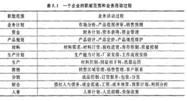 每个职能范围都要实现一定数量的业务活动过程,表5.1指出了37个过程,绝大多数企业会包含更多的过程。