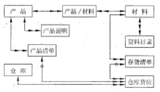 图5.7描述了一个局部范围内的实体联系图,其符号的表示遵从上面的约定。其含义是说明产品/材料是二个连接在一起的实体,即某个具体的产品所使用的某种具体材料的相互联系的数据,这些数据不能单独由产品或单独由材料来确定。如它可以表示指定商店中指定材料的用量。