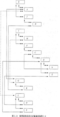 如果把深度为1的实体画在实体图的左边,深度为2的实体画在向左偏移一段距离的分支位置,深度为N的实体画在向右偏移N-1段距离的分支位置,并且深度为N(N>1>的实体是在它指向的深度为N-1的实体下方分支位置上。在每一个深度为1的实体下面的实体形成一个簇,连接这些簇的箭头画在实体图的左边。图5.10是根据上述方法重新绘制图5.9.