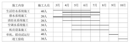 表1-1 建筑生活给水、排水、消防和空调水系统施工进度计划表