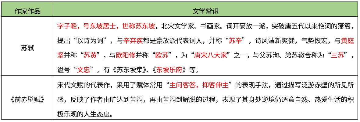 【考点】本题考查作品篇目-诗词曲赋单元-《前赤壁赋》/《赤壁赋》【希赛点拨】