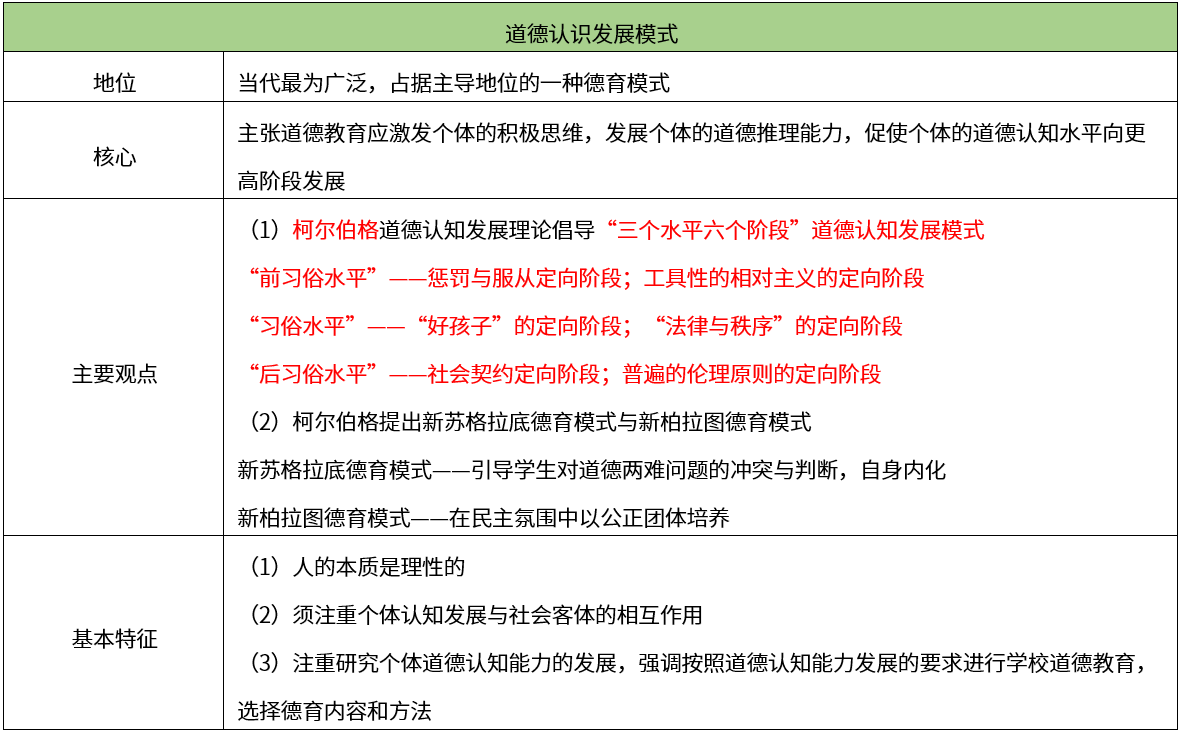 【考点】本题考查学校德育-德育模式-国外经典的德育模式-道德认知发展模式【解析】道德认知发展模式由美国著名道德教育学家与发展心理学家柯尔伯格借鉴皮亚杰儿童道德发展心理学理论创立。柯尔伯格道德认知发展理论倡导“三个水平六个阶段”道德认知发展模式。即“前习俗水平”——惩罚与服从定向阶段;工具性的相对主义的定向阶段“习俗水平”——“好孩子”的定向阶段;“法律与秩序”的定向阶段“后习俗水平”——社会契约定向阶段;普遍的伦理原则的定向阶段。故本题选B。【希赛点拨】