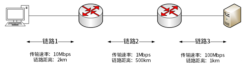 如下图所示,假设分组长度为 16000 比特,每段链路的传播速率为3*105km/s,只考虑传输延迟和传播延迟,则端到端的总延迟为( )秒。