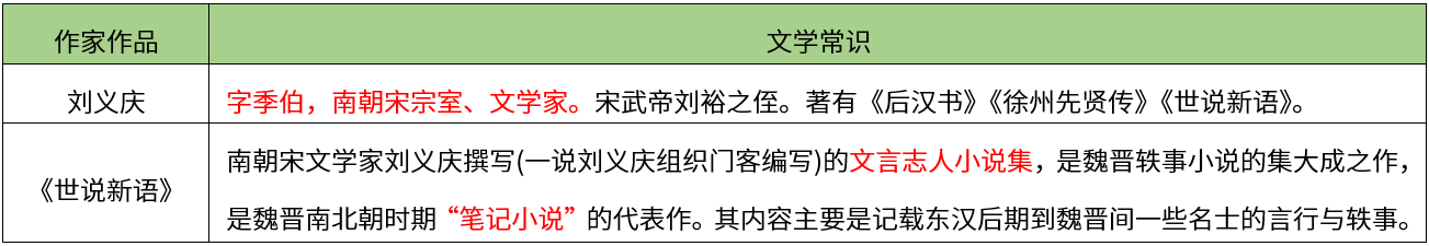 【考点】本题考查作品篇目-小说戏剧单元-《世说新语》