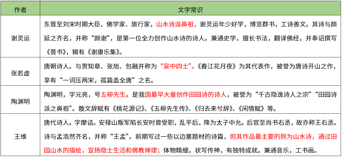【考点】本题考查文学常识-作家作品常识-中国古代文学【解析】陶渊明是我国最早大量创作田园诗的诗人。谢灵运是南朝宋诗人,最早大量创作山水诗。陶渊明与谢灵运并称为“陶谢”。张若虚是初唐诗人,以“文辞俊秀”而名扬于上京。王维为唐代山水田园诗人。故本题选C。【希赛点拨】