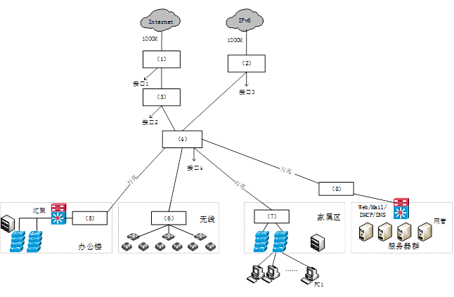 E.出口路由器 F.IPv6路由器 G.防火墙 H.并发与流量控制器(采用桥接模式)