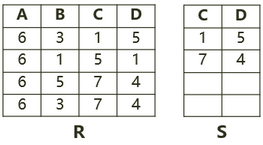 (2)针对R与S做C与D属性的等值连接。同时两个关系的相同属性只保留1个,即两个C只保留1个,两个D也只保留1个。