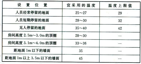 根据国内外技术资料从人体舒适和安全角度考虑,对辐射供暖的辐射体表面平均温度作了具体规定。