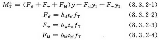 1 当塑性中和轴在混凝土翼板内(图8.3.2-1),即behcbfcT≥Fbf+Fw+Ftf时,正弯矩承载力应按下列公式计算: