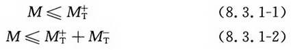 8.3.1 火灾下钢与混凝土组合梁的承载力验算,两端铰接时,应按式(8.3.1-1)进行;两端刚接时,应按式(8.3.1-2)进行。